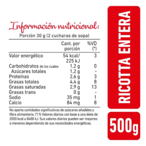 Ricotta Garcia Entera Bajo Sodio 500gr