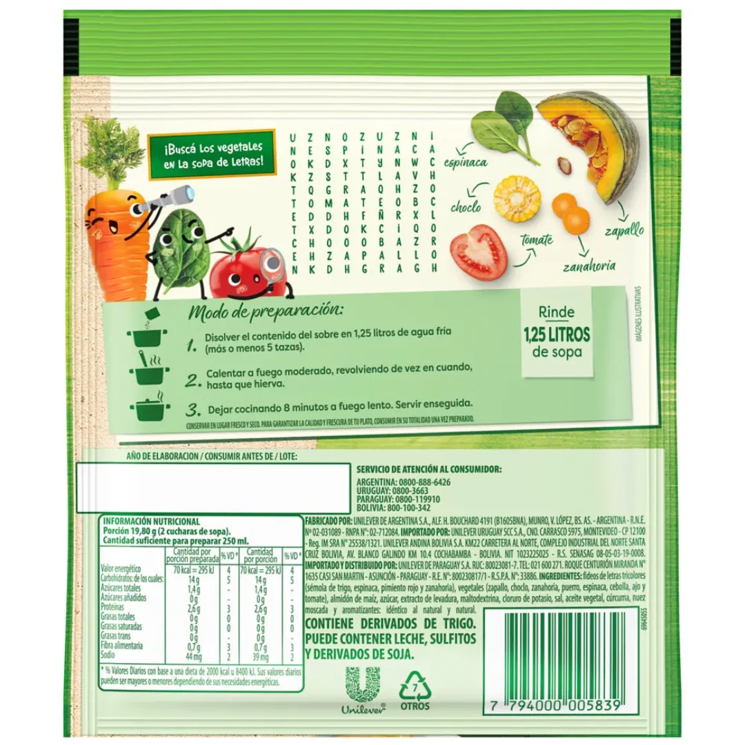 Sopa De Letras Knorr Con Vegetales 107.5g
