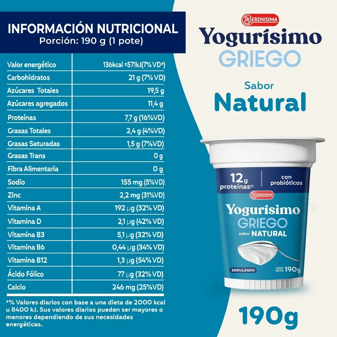 Yogur Griego Natural Endulzado Yogurísimo 190g